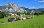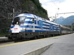 ÖBB 1116 007-4 "EM Griechenland" an einem EC nach Wien Westbahnhof beim Zwischenhalt im Bahnhof Imst-Pitztal.