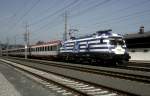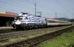 ÖBB 1116 007-4  EM Griechenland  an einem EC nach Wien Westbahnhof beim Zwischenhalt im Bahnhof Imst-Pitztal. Aufgenommen am 22.08.2008