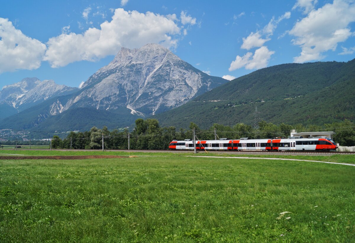 Die Zeit der Talent-Triebzüge im Schrägdesign neigt sich österreichweit dem Ende zu. Inzwischen verkehrt auch in Tirol nur mehr eine einzige Garnitur im gewohnten Erscheinungsbild, alle anderen wurden bereits an das Cityjet-Design angepasst. Im Sommer 2020 war dies noch anders, als diese Aufnahme eines 4024 vor der Hohen Munde bei Flaurling an der Arlbergbahn gelang. Der Triebwagen war aus Ötztal kommend als S 5159 auf dem Weg Richtung Innsbruck. (30.07.2020)