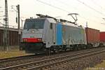 BLS 486 502 fährt am 5.05.2014 bei Unterberg Stefansbrücke mit einem Güterzug nach Norden.