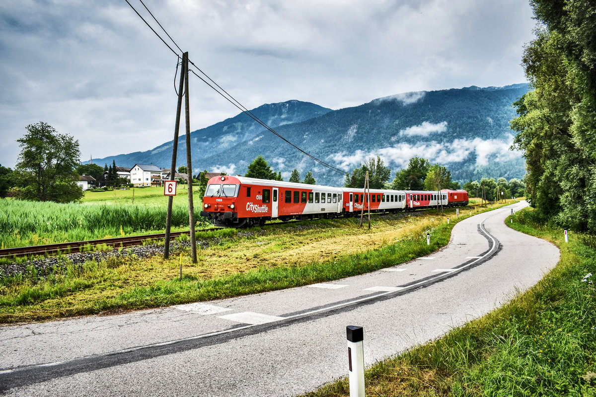 Geschoben von 2016 059-5, fährt die S4 4813 (Villach Hbf - Hermagor), bei der Haltestelle Emmersdorf im Gailtal vorüber.