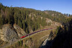 Im Februar 2002 bespannt sie einen Güterzug in Richtung Villach hier zwischen Mariahof-St.Lambrecht und Neumarkt in Steiermark. Max Kiegerl