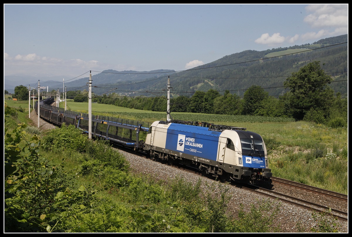 1216 954 mit Güterzug bei Niklasdorf am 25.06.2019.