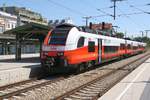 ÖBB CityJet 4744 051 steht an grauen 28 Augustus 2021 in Linz Hbf.