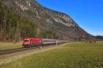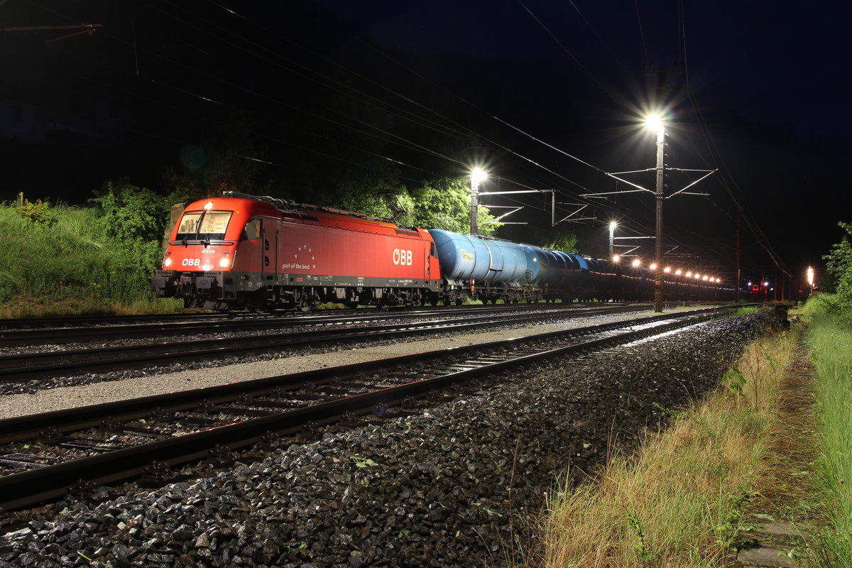 Tief in der Nacht des 26.5.2020 steht die 1216 210 mit dem RID47636 von Bratislava Petrzalka nach Graz Ostbahnhof im Bahnhof Spital am Semmering und wartet auf die Weiterfahrt. Hier wurden die zwei Vorspanntriebfahrzeuge wieder abgekuppelt die ab Gloggnitz über den Semmering geholfen haben.