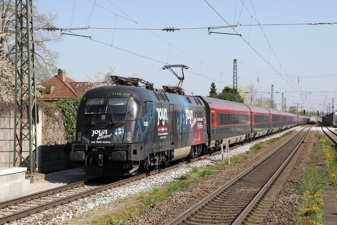 Ohne Sorgen brauste die 1116 247  Wiener Städtische  mit dem Railjet 556 am Haken (Wien Hauptbahnhof> Lienz) Anfang April 2026 unweit des Nordportals des Hengesbergtunnels an mir vorbei.