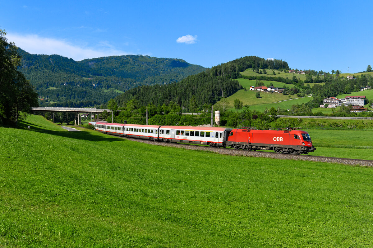 Zwei Stunden später war der nächste Werbetaurus fällig: Am 25. Dezember 2015 bespannte die 1016.048 den IC 640 von Flughafen Wien Bahnhof nach Salzburg HBF. Bei Köstendorf hat der Zug sein Ziel bald erreicht. Den Feuerwehr-Taurus hatte ich zwar schon vor ein paar Tagen erwischt, diesmal konnte ich allerdings die rote Seite des gelungenen Werbe-Stiers ablichten.