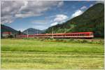 An einem heißen Augustwochenende 1987 fährt der 4010 014 hier bei Hochgrieß bergwärts auf den Olfapass.