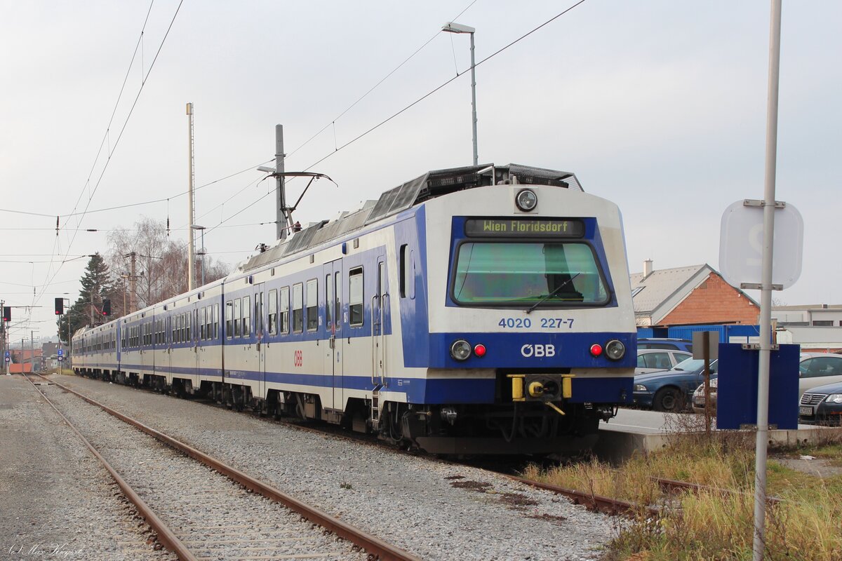 Blick ins Archiv: Am 2.1.2014 steht der 4020 227 und ein weiterer 4020 im Bahnhof Wolfsthal und wartet auf die Abfahrt nach Wien Floridsdorf. Wolfsthal liegt an der 1914 eröffneten Pressburgerbahn von Wien nach Pressburg und ist seit dem Bau des eisernen Vorhangs 1955 Endbahnhof. Es endet hier die Schnellbahnlinie S7. Der 4020 227 wurde im Sommer 2021 abgestellt.