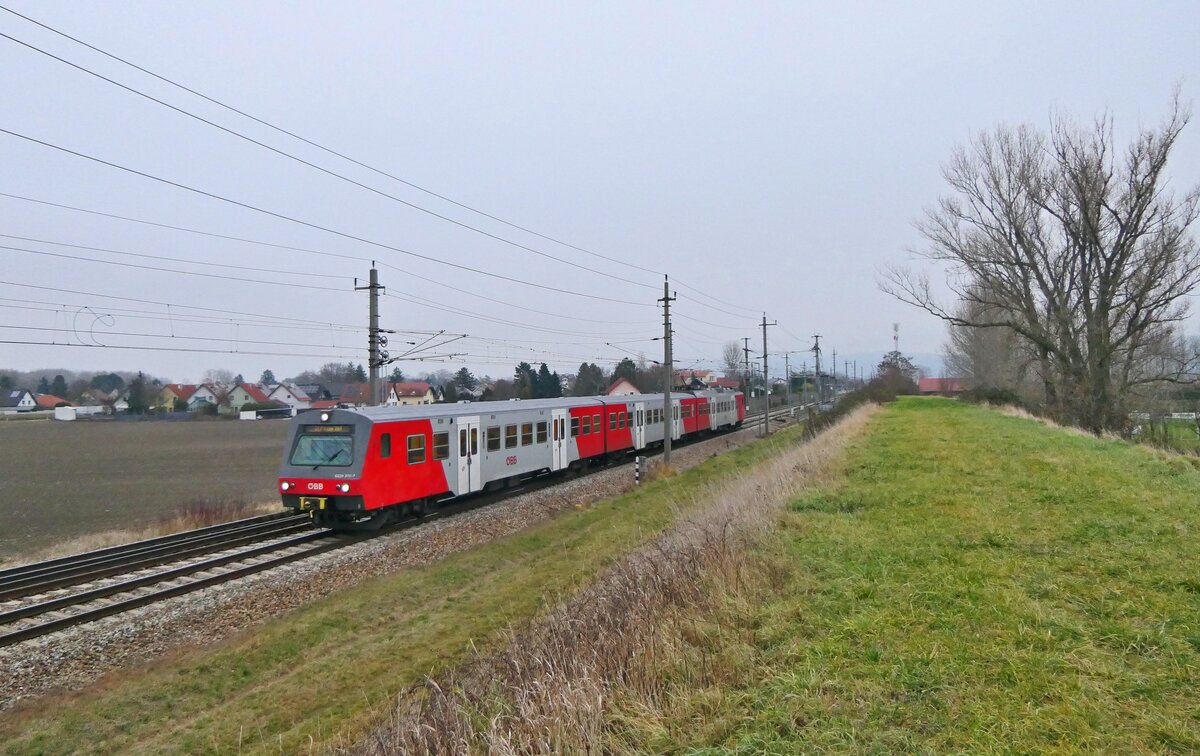 4020er Tandem als S 40 von Wien nach Sigmundsherberg, aufgenommen am 16.4.2007 kurz vor der Haltestelle Muckendorf an der Franz Josefs Bahn.