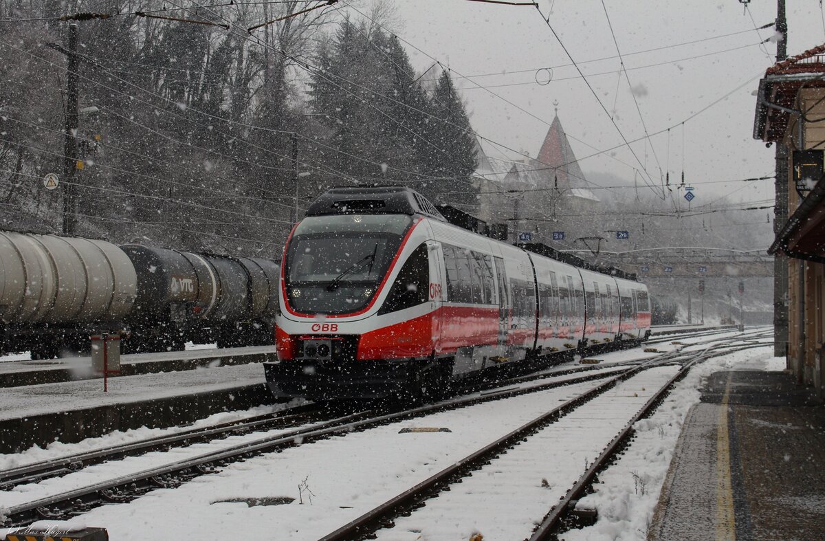 Ausfahrt am 30.06.2018 von ÖBB 4024 054-1 als S-Bahn (Bludenz - Bregenz Hafen) aus dem Bahnhof von Feldkirch in Richtung Bodensee.