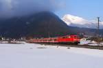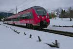 Der Tiroler Weihnachtszug in Form des Ex-Kärtners 4024 123-3 wirbt für mehr Liebe und Zusammenhalt. Von 1. bis 24. Dezember gab es auch das ein oder andere Angebot an Bord des Triebwagens. Am 27.12.2023 war er als S-Bahn-Pendler auf der Karwendelstrecke eingeteilt, wo er kurz hinter Seefeld in Tirol in winterlicher Atmosphäre als Zug 5455 bei der Talfahrt nach Innsbruck Hauptbahnhof aufgenommen werden konnte.