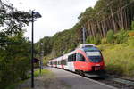 4024 057-4 erreicht als S 5454 (Innsbruck Hbf - Scharnitz) die noch mit einem Schotterbahnsteig versehene Haltestelle Leithen bei Seefeld. Nach kurzem Aufenthalt an der Bedarfshaltestelle wird die Fahrt fortgesetzt und das Seefelder Plateau befahren. 27.09.2019.