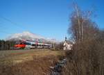 Mittlerweile fest im Tiroler Nahverkehr etabliert ist der 4024 118-4 "LiteraTourZug" aus Kärnten. Am 29.12.2019 zählte auch er zu den auf der S1 eingesetzten 4 Triebwagen, die den ganzen Tag über ihren Dienst fahrplanmäßig versahen. Mit frisch lackierter Triebwagenspitze des 6024 strebte er bei Brixlegg dem Bestimmungsbahnhof Telfs-Pfaffenhofen als S 5118 entgegen.