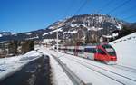Mit der Neuordnung des inneralpinen Verkehrs der ÖBB durch die Eröffnung der Koralmbahn wurde neben den IC-Linien auch die REX-Verbindung Salzburg - Wörgl auf die neue Zuggattung InterRegio umgestellt. Somit kommen auch hier nur mehr Desiro ML alpin zum Einsatz und Altgarnituren gehören der Vergangenheit an. Dadurch werden nun auch auf einer ehemaligen REX-Linie eine (sehr spärlich ausfallende) 1. Wagenklasse sowie ein Snack-Service angeboten. Der für diesen Einsatz bestellte brandneue Triebwagen 4746 156 konnte am 05.01.2026 als IR 714 (Salzburg Hbf - Wörgl Hbf) bei Pfarrwerfen vor dem Tennengebirge aufgenommen werden.
