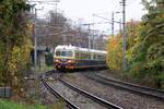 Wien. Als an diesem 16.02.2024 die letzten Sonnenstrahlen über dem Wiener Horizont verschwinden, fährt hier der 4024 056 in den Bahnhof Aspern Nord ein.