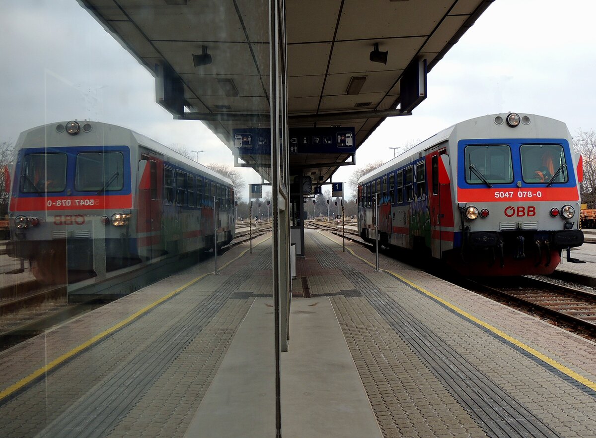5047 004 war am 12.09.2025 als R7423 auf der Aspangbahn nach Traiskirchen unterwegs. Nach einem Regenguss hat der Zug gerade den Bahnhof Guntramsdorf-Kaiserau verlassen.