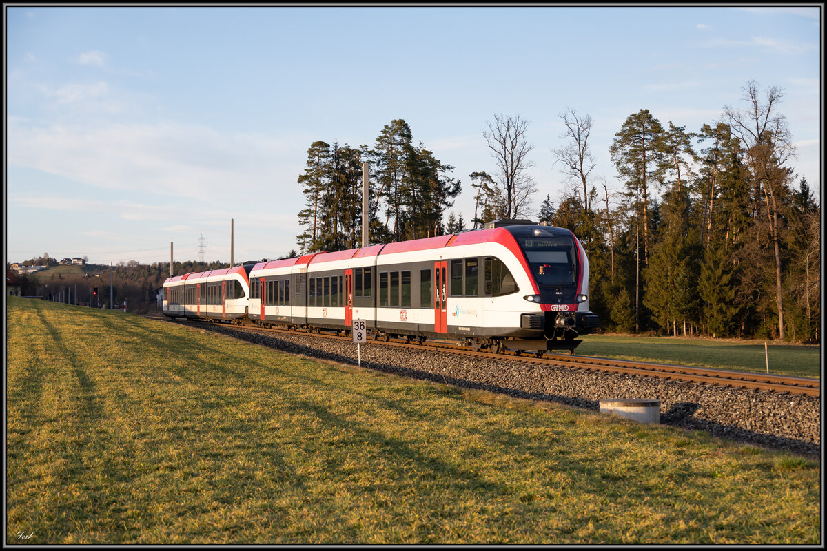 Bereits kurz nach dem Start wird dieser GTW 2/8 seinen nächsten Halt , Wies Markt , in kürze erreichen.