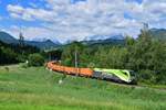 1016 014 ÖBB  CAT - City Airport Train  mit einem KLV-Zug bei Breitenfurt Richtung Treuchtlingen, 23.11.2021