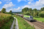 Lokportrait von 1016 020 ÖBB "Ein neues Kapitel beim Klimaschutz" mit einem gemischten Güterzug bei Thüngen Richtung Schweinfurt, 23.10.2021