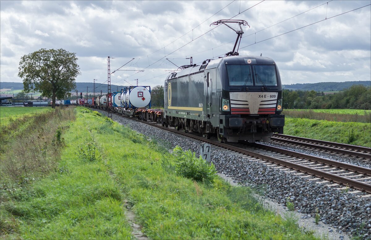 X4E 604 verlässt am 26.09.2025 pünktlich die Halte und Ladestelle Bad Schwanberg .