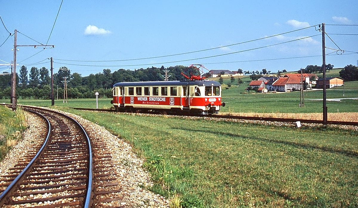ET/EB 22 132/232 und 133/233 der Linzer Lokalbahn (ex Köln-Frechen-Benzelrather Eisenbahn 1287 und 1288) im Linzer Lokalbahnhof (Sommer 1992)