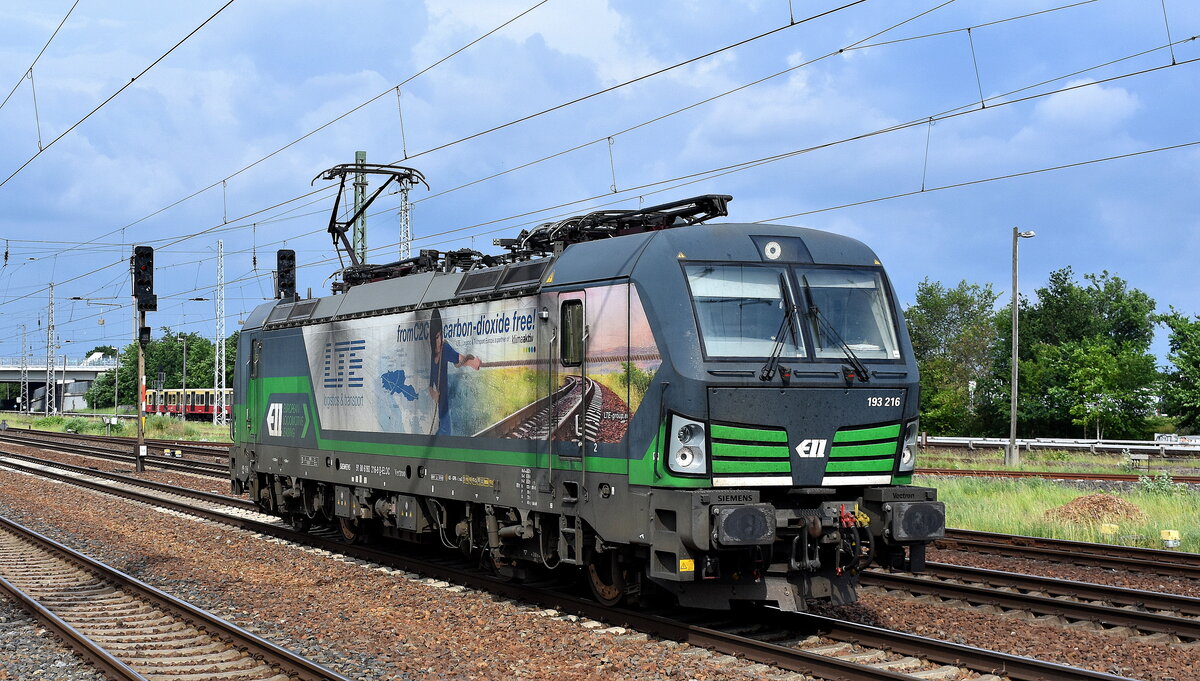LTE Logistik und Transport GmbH, Graz [A] mit der ELL Vectron "193 216" [NVR-Nummer: 91 80 6193 216-9 D-ELOC] am 22.05.24 Höhe Bahnhof Schönefeld b. Berlin.