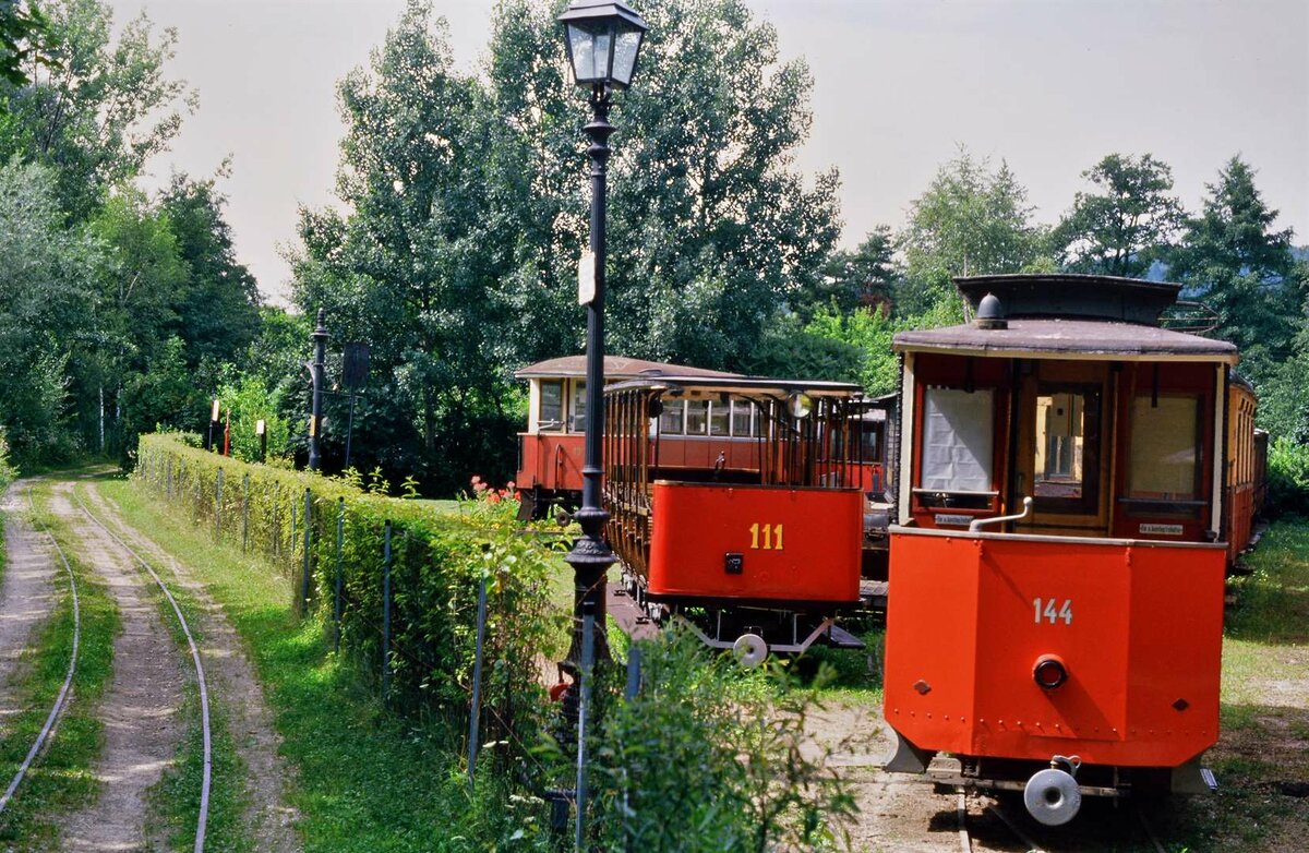 Völlig ungeschützte österreichische Straßenbahnschätze auf einem Remisengelände der Lendcanaltramway Klagenfurt (am Wörthersee) .