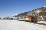 ÖBB 1116 159 "Spardabank" mit gemischtem Anhang bei Eglharting, 06.02.2024