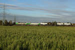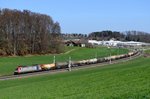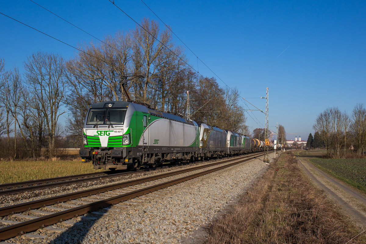 Einen sehr ansehnlichen Viererpack bildeten die 193 821, 193 218, 1216 960 sowie die 193 831, die einen Schlammkreidezug von Plattling über Freilassing nach Jesenice bringen. Aufgenommen wurde das Bild bei Freising.