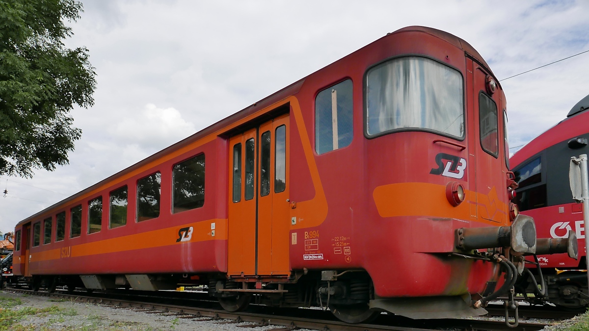 Steuerwagen Bt994 des Elektrotriebwagen ET15 der Steiermarkbahn im Bahnhof Übelbach anlässlich einer Fahrzeugausstellung zur 100-Jahr-Feier der Strecke Peggau-Übelbach, 04.08.2019