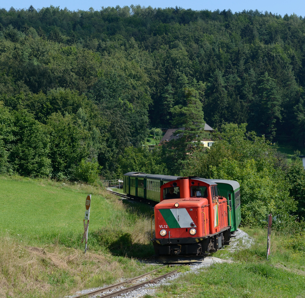 Die StLB VL 12 war am 25. Juli 2018 mit dem Vormittagszug von Birkfeld nach Weiz unterwegs, und wurde von mir kurz vor der Haltestelle Peesen fotografiert.