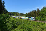 Inzwischen sechs Zugpaare der Westbahn verkehren nun täglich zwischen Wien und München. Wenige Wochen nach Aufnahme des Betriebs konnte ich den 4010 029 als WB 969 nach Wien Westbahnhof im Waldstück zwischen Grafing und Aßling fotografieren.