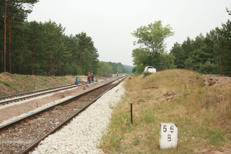 Gleisbaustelle, Einbau eines Überholgleises, Blickrichtung Osten