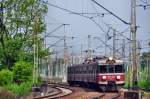 Dampflok aus Blumen als Zierde einer Verkehrsinsel in Kattowitz an der ul. Kosciuszki (Straßenecker der ehmaligen Sephien-, Beate-, Holtei- und Sachs-Straße) unweit vom Hauptbahnhof am 2. Juli 2015