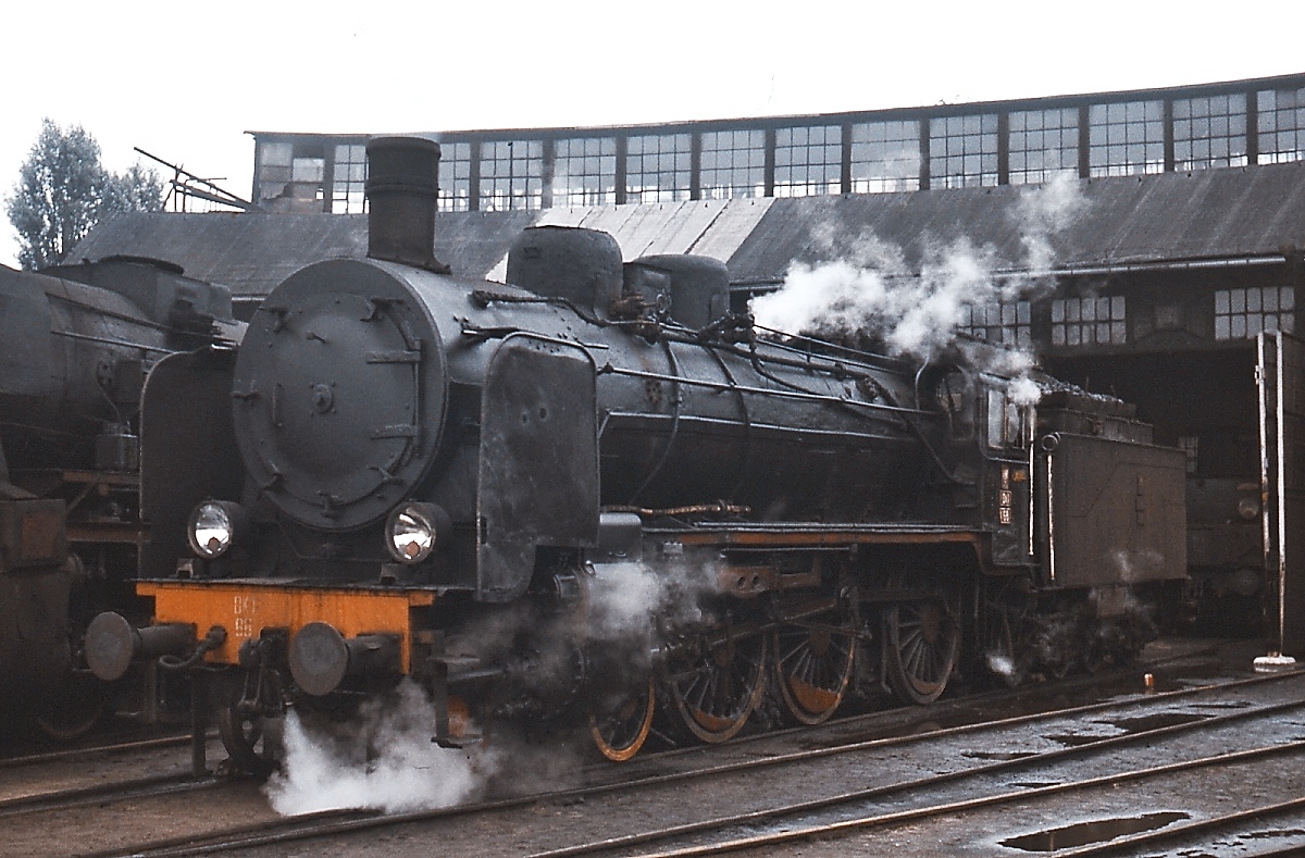Die ehemalige Reichsbahn-38 2170, eine von der PKP in Ok1 66 umbezeichnete preußische P8 wartet am 20.09.1976 im Bw Choszczno, dem früheren Arnswalde, auf ihren nächsten Einsatz. Anfang der 1950er Jahre hatte die PKP über 400 Ok1 im Bestand, Ende 1976 waren es noch 124, im Januar 1981 schied die letzte aus dem Plandienst aus.