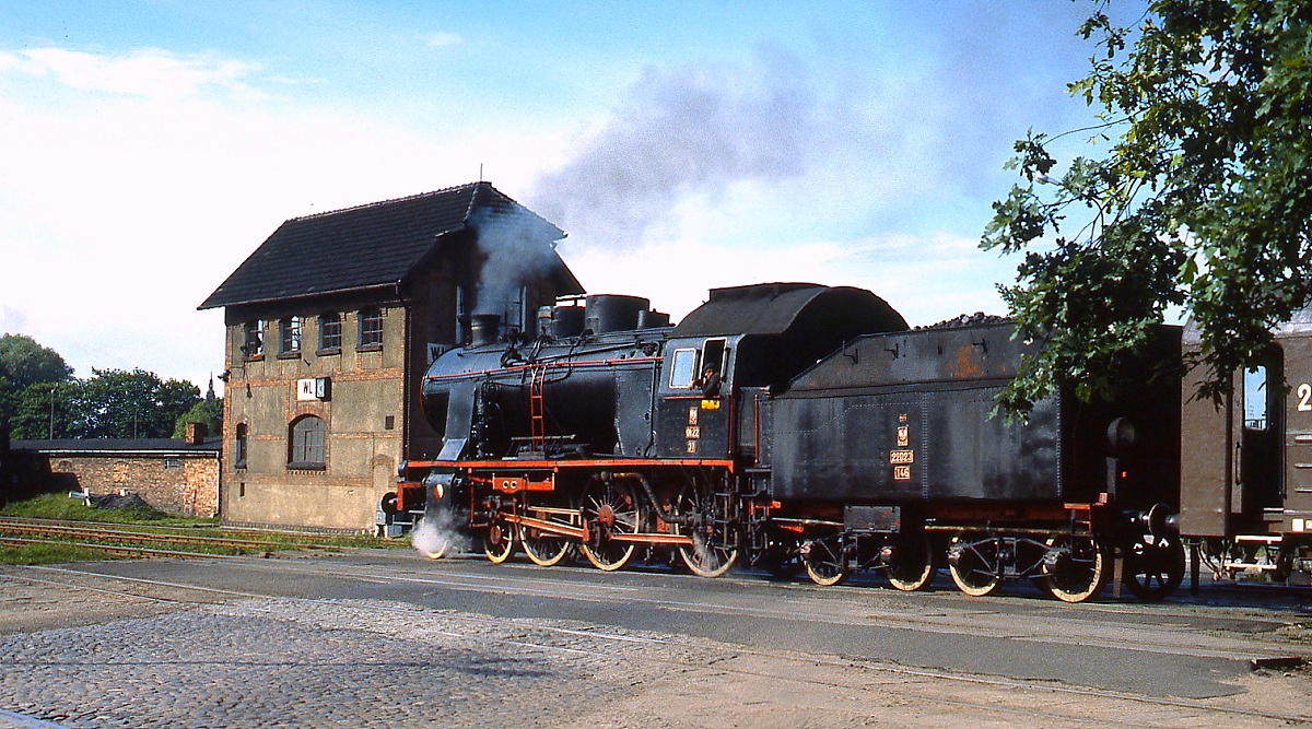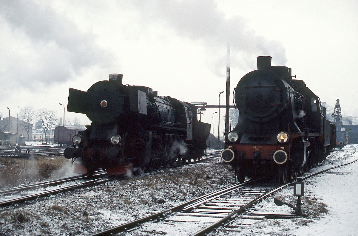 Einer der Höhepunkte der Dampflokparade in Wolsztyn am 3.5.2008 – der 16er Lokzug zum Abschluss der Parade, welcher von Ok22-31 angeführt wurde. Die Baureihe Ok22 ist der Nachbau von der preußischen P8. Deswegen drug Ok22-31 während des Zweiten Weltkrieges bei der DRG die Bezeichnung 38 4536. Sie gehört dem Eisenbahnmuseum in Warschau und ist seit Juli 1987 in Wolsztyn stationiert.