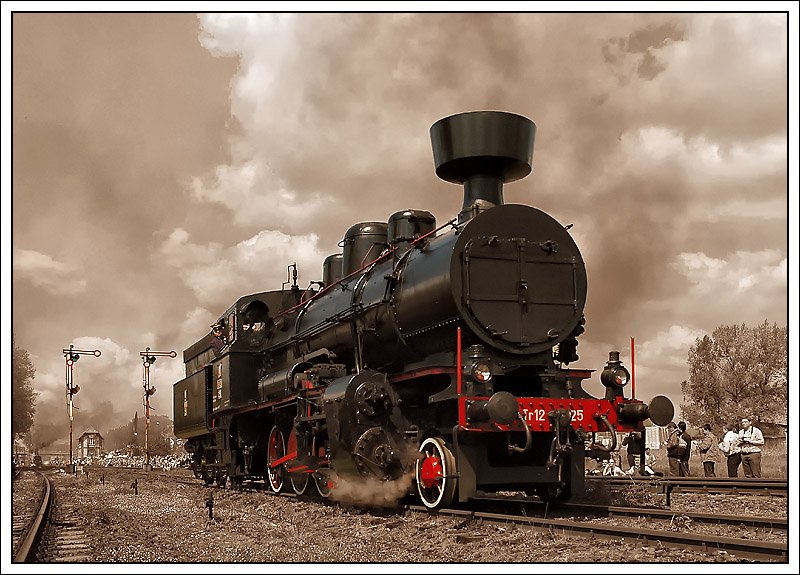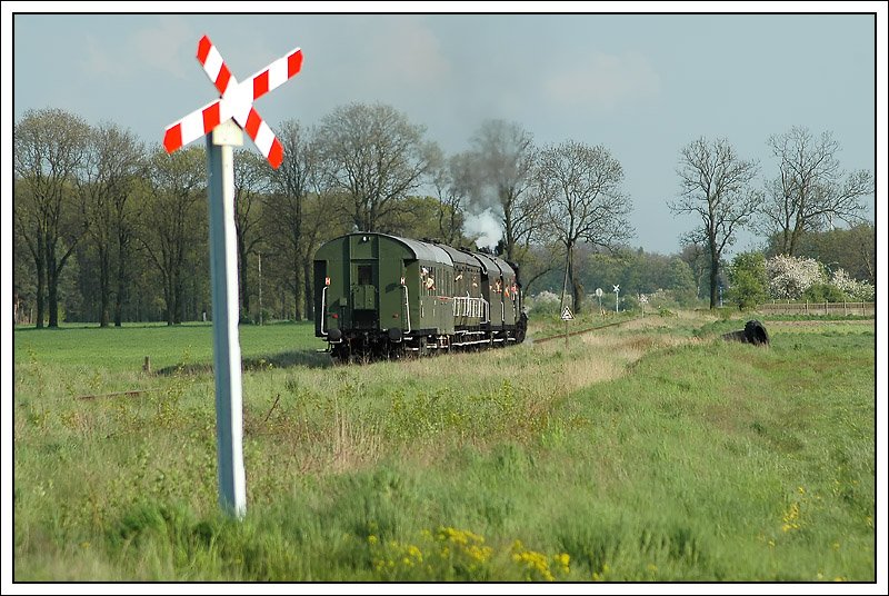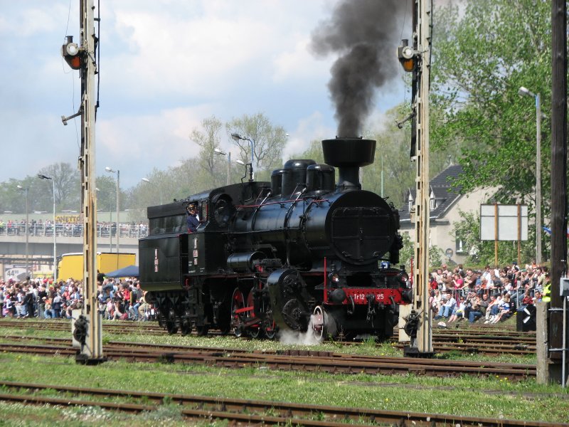 Tr12-25 (ex ÖBB 270.203 - ex DRB 56.3522) bespannte am Nachmittag des 3.5.2008 noch einen Sonderzug von Wolsztyn nach Zbaszynek und wieder retour. Die Aufnahme entstand ca. drei Kilometer von Wolsztyn entfernt.