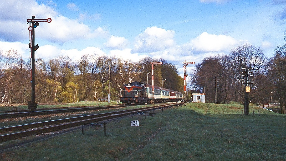 An einem Aprilmorgen 1998 wartet eine unbekannte SP42 gegen 05:30 Uhr im masurischen Bahnhof Bartoszyce/Bartenstein auf Fahrgäste nach Korsze/Korschen. Bartoszyce liegt an der zwischen 1866 und 1873 von der Ostpreußischen Südbahn-Gesellschaft gebauten Strecke von Königsberg nach Prostken an der damaligen deutsch-russischen Grenze, ab dort führten Breitspurgleise der russischen Eisenbahn weiter nach Brest. Nach dem zweiten Weltkrieg verläuft etwa 16 km von hier entfernt die polnisch-russische Grenze. Für den Güterverkehr wurde ein Breitspurgleis von Bartoszyce nach Bagrationowsk, dem früheren Preußisch Eylau, verlegt. Dieser grenzüberschreitende Verkehr endete 2001, ein Jahr später wurde auch der Personenverkehr von Korsze nach Bartoszyce eingestellt.