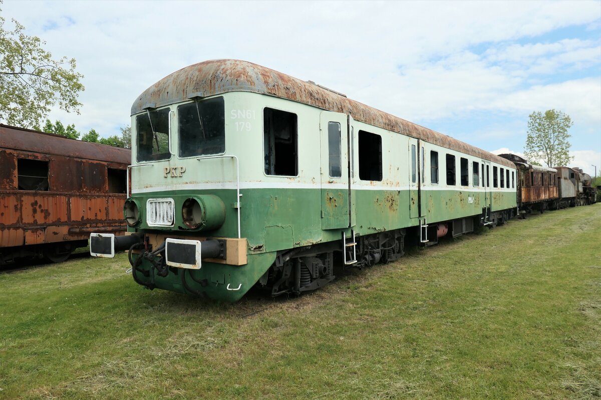 Der SN 61 179, einer der zahlreichen Triebwagen ungarischer Bauart in Polen leider in etwas unvollständigem Zustand