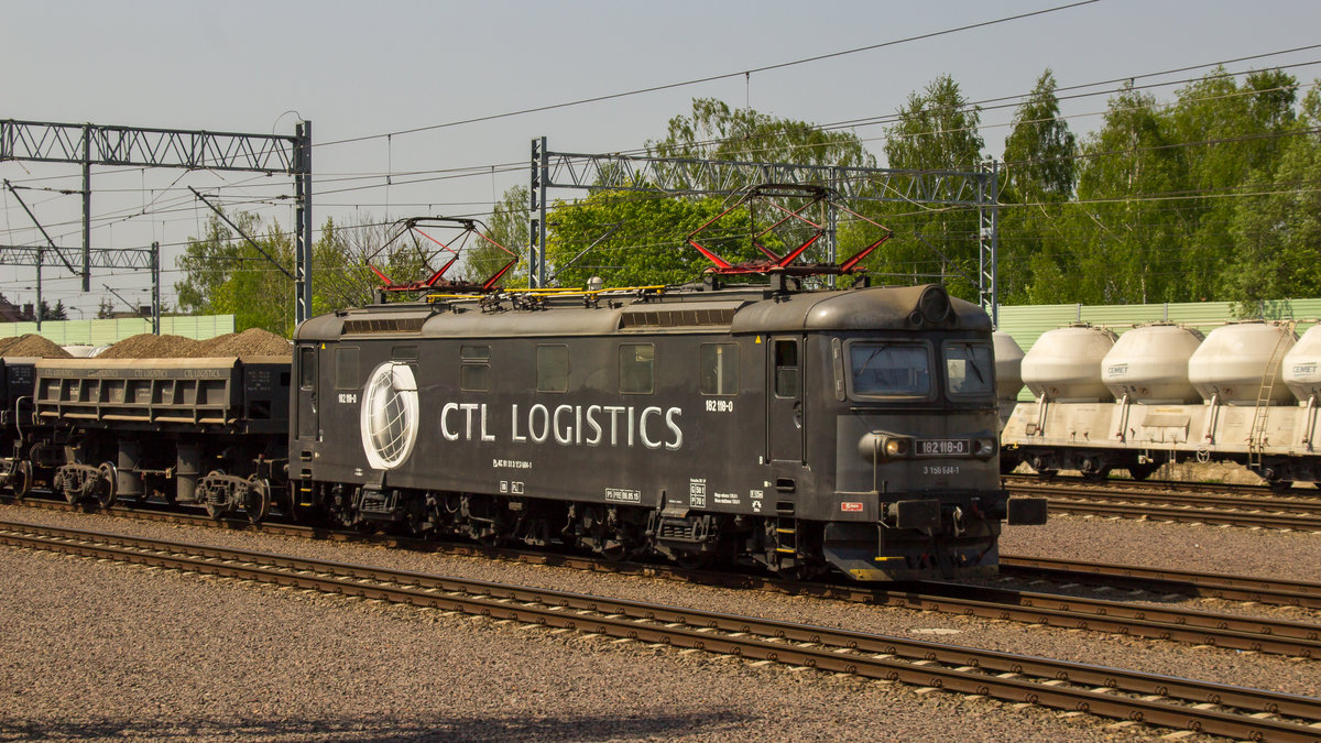 CTL Logistics Sp. z o.o. mit ihrer "182 100-8" (NVR: "91 51 3 150 681-7 PL-CTLL") und einem firmeneigenen Kesselwagenzug am 04.05.23 Durchfahrt Bahnhof Kostrzyn nad Odrą (Polen).