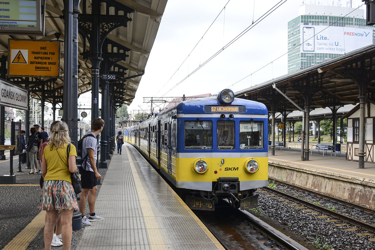 Elektrotriebzug PKP EN57 750 rh in Zoppot / Sopot. Aufnahme: 14. August 2019.