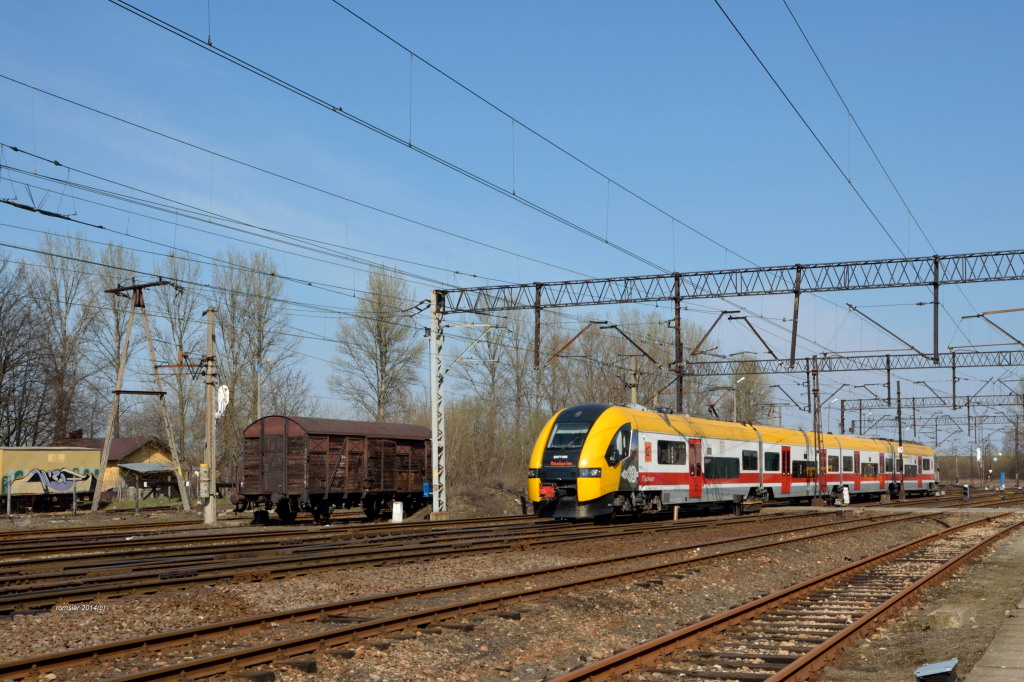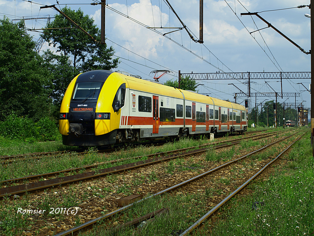 EN77-005 als der Zug RB aus Wieliczka(bei Kraków)erbricht in  die Endstation herein am 22.03.2014.