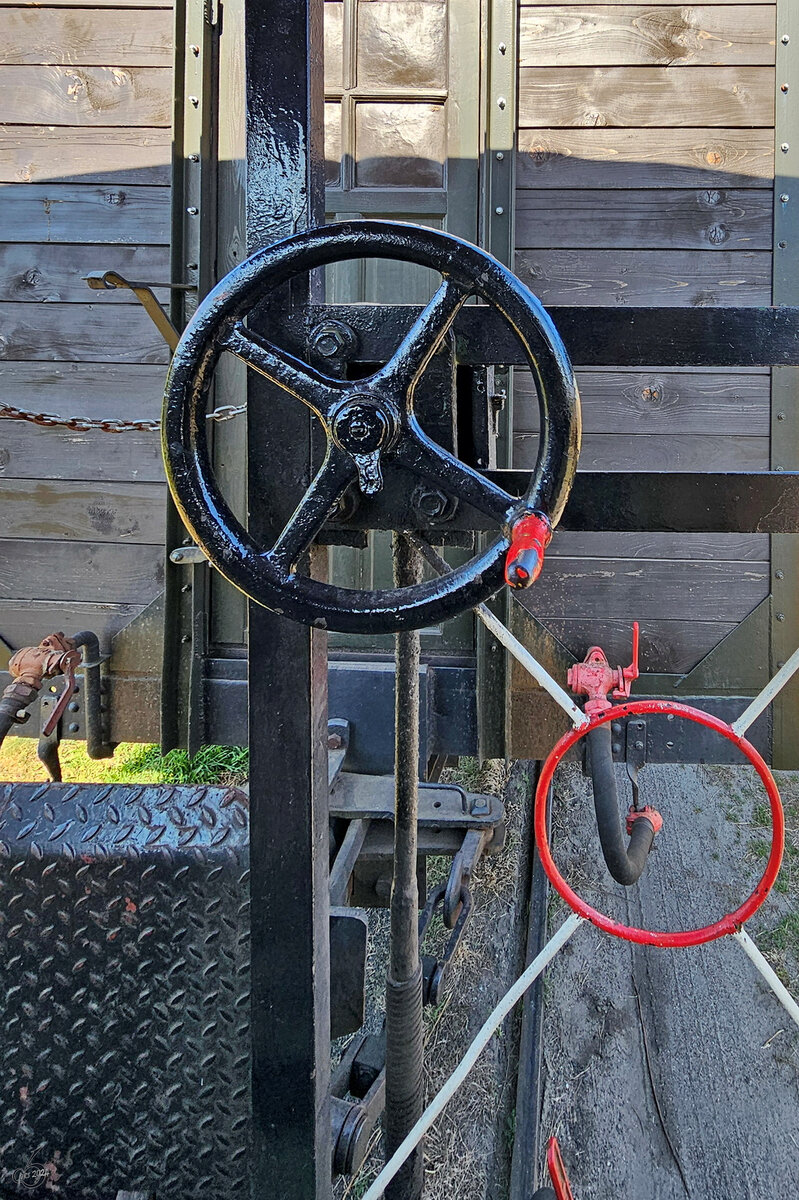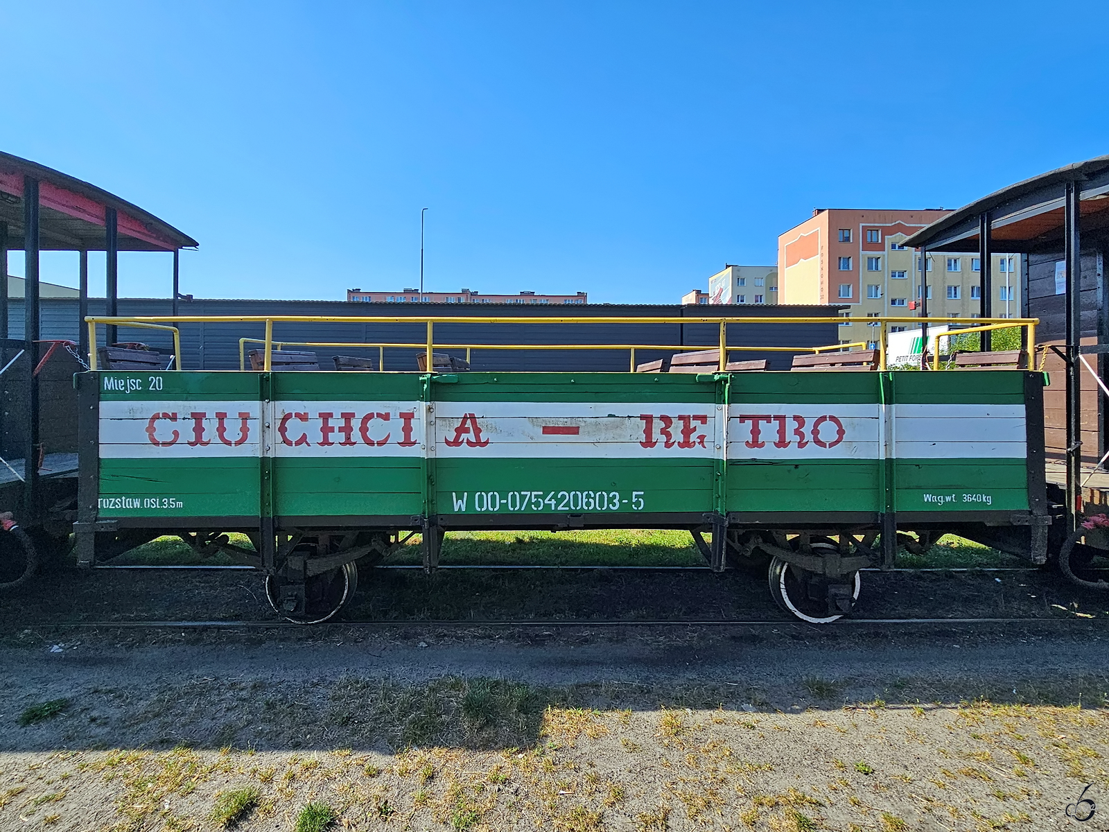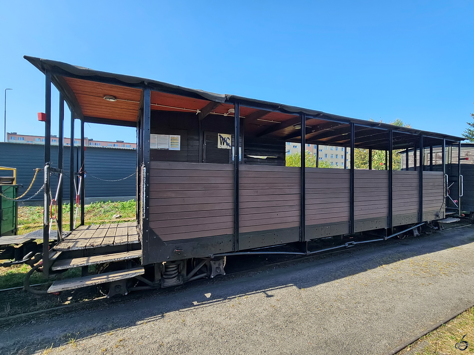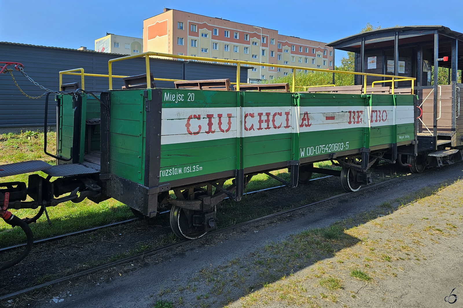 Der Innenbereich dieses Schmalspurwagens sieht noch sehr leer aus, vermutlich werden hier auch irgendwann Sitzbänke installiert werden. (Rosnowo (Roßnov), September 2024)