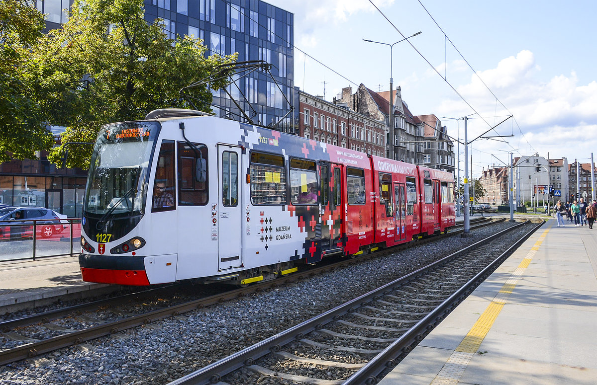 DUEWAG N8C-NF (1131) vom ZTM Gdańsk (Zarząd Transportu Miejskiego w Gdańsku, deutsch: Städtischer Transportbetrieb Danzig) auf dem Plac Solidarnosci in Danzig. Aufnahme: 14. August 2019.