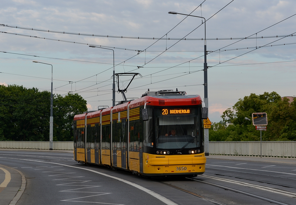 Der PESA 128N besticht durch eine markante, streitbare Form. In Warschau verkehren 45 dieser in den Jahren 2014 und 2015 beschafften Straßenbahnzüge. 17.4.2019, Centrum