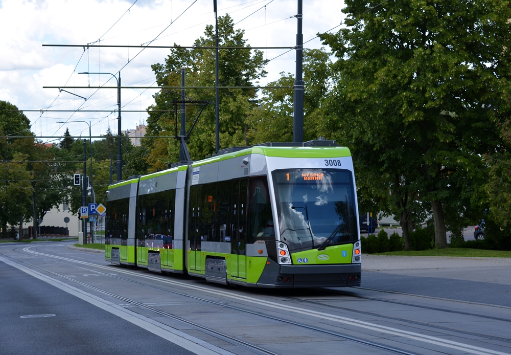20.07.2016, Olsztyn (Allenstein), Żołnierska. Solaris Tramino S111O #3008 auf dem Weg nach Wysoka Brama.