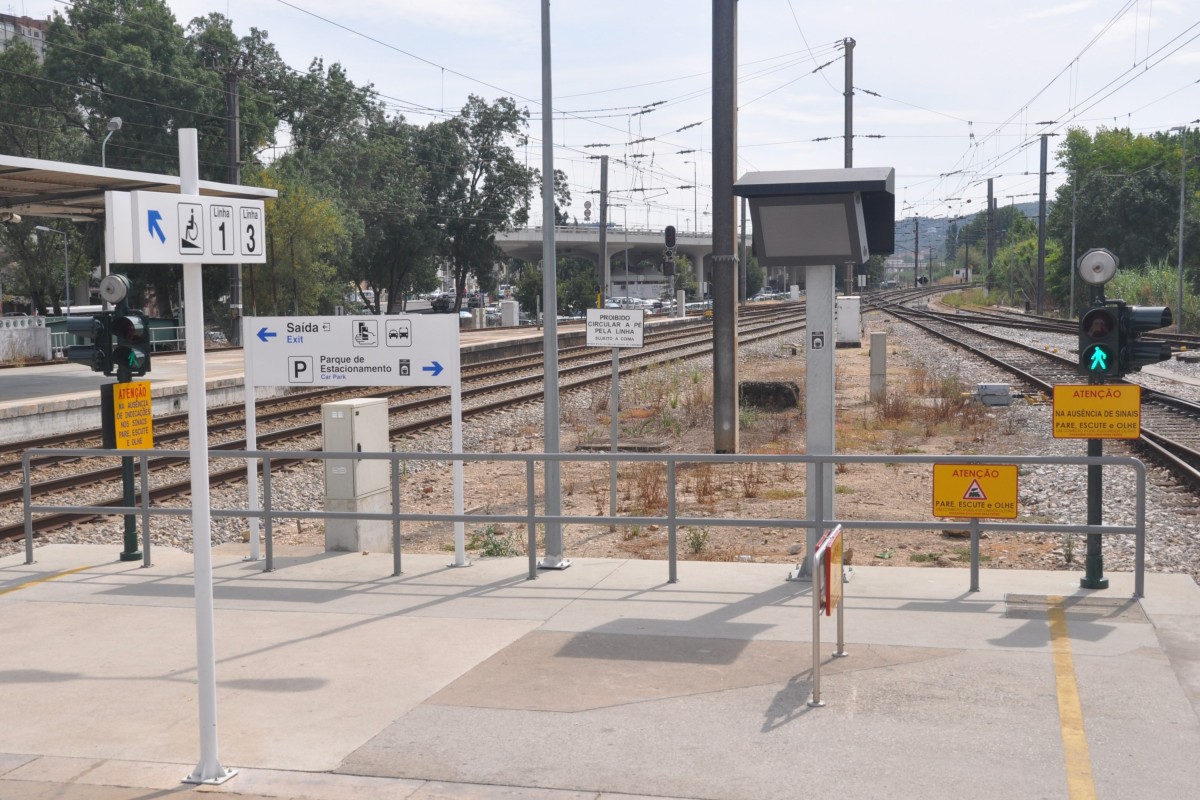 COIMBRA (Distrikt Coimbra/Concelho Coimbra), 24.09.2013, die spanische Diesellok 335 003-0 durchfährt mit einem Güterzug den Bahnhof Coimbra-B; in Deutschland ist diese Lok bekannt als Vossloh Euro 4000)
