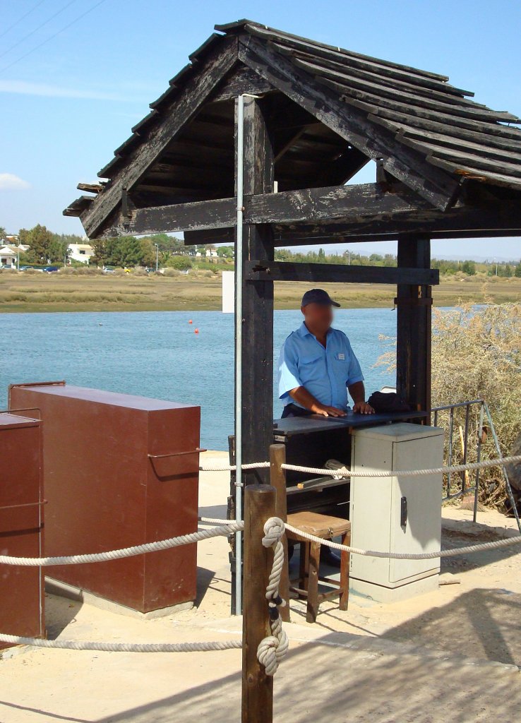Ankunft am Festlandsbahnhof in Pedras dél Rei. Ausgestiegen wird links, rechts warten schon die Passagiere auf die Rückfahrt zum Strand. 14.9.2008