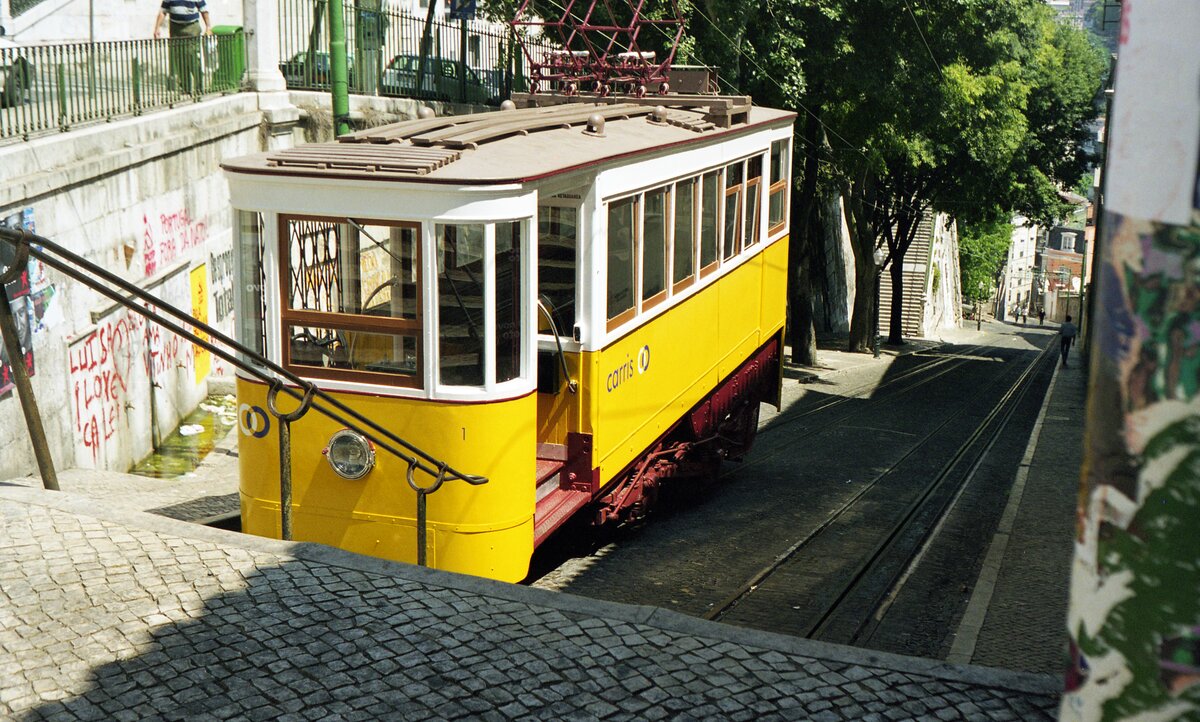 Eine der drei Standseilbahnen in Lissabon ist die Ascensor da Glória (Dezember 2016)